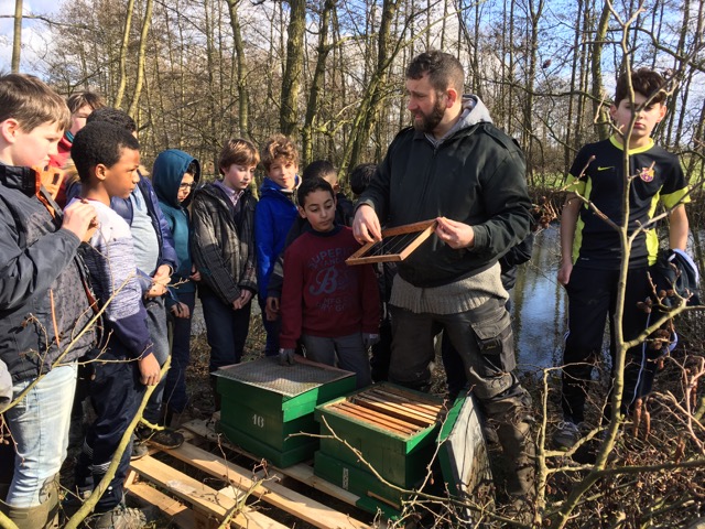 Insectenhotel gebouwd door leerlingen van het vijfde leerjaar van de Sint Pietersschool samen met Aculea, de bijenwerkgroep van Natuurpunt.
